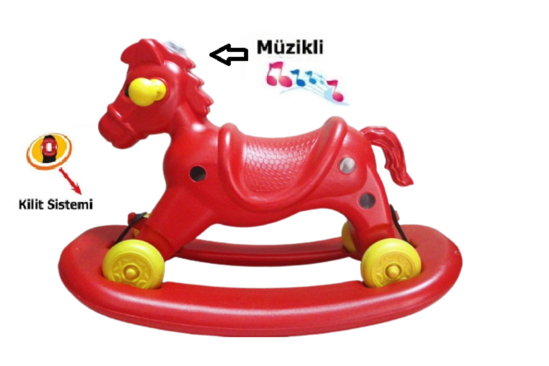 EtiketlerMüzikli ve Işıklı Sallanan At 4 Teker Kırmızı 1 Adet Artlantis Müzikli ve Işıklı Sallanan At