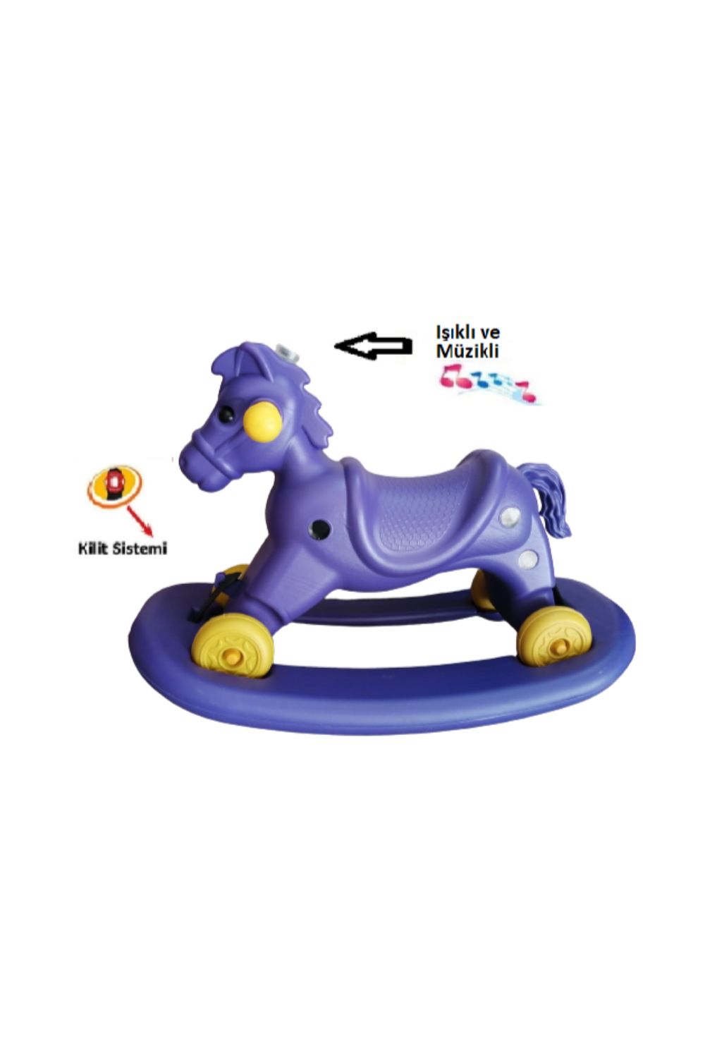 EtiketlerMüzikli ve Işıklı Sallanan At 4 Teker Mor 1 Adet Artlantis Müzikli ve Işıklı Sallanan At