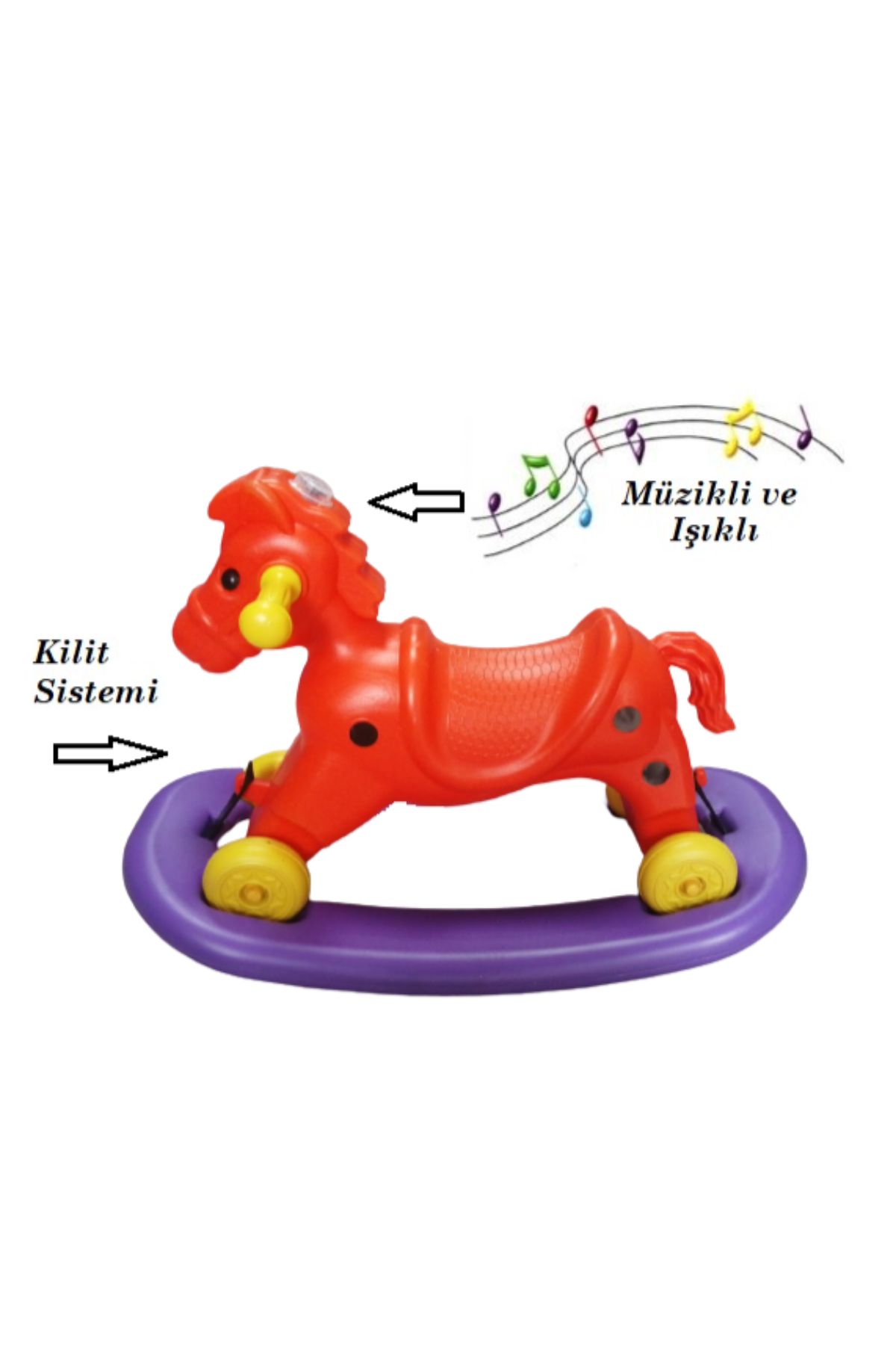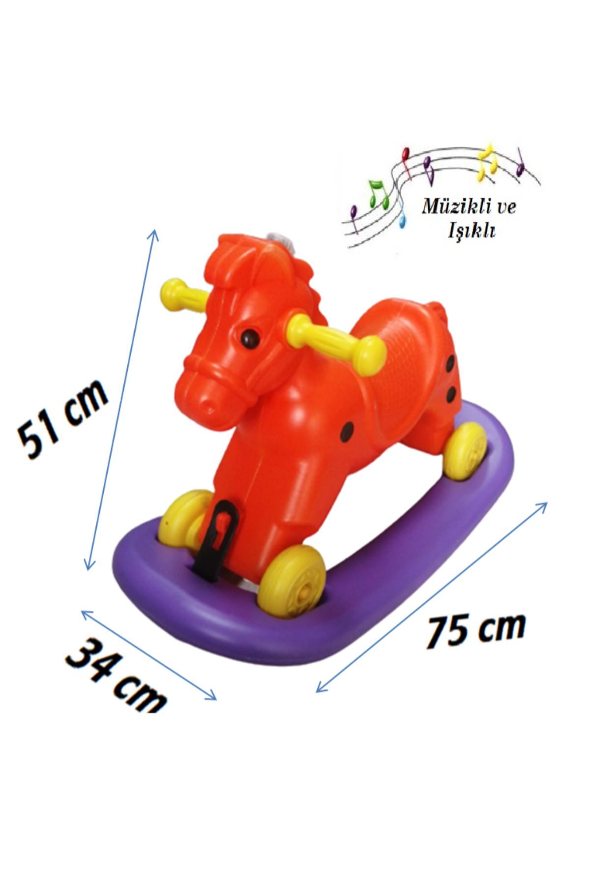 EtiketlerMüzikli ve Işıklı Sallanan At 4 Teker Turuncu Mor 1 Adet Artlantis Müzikli ve Işıklı Sallanan At