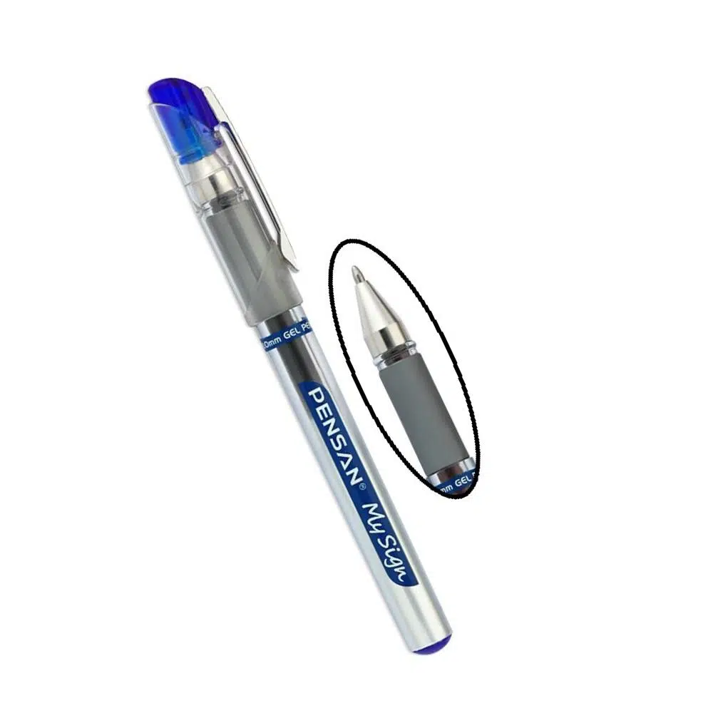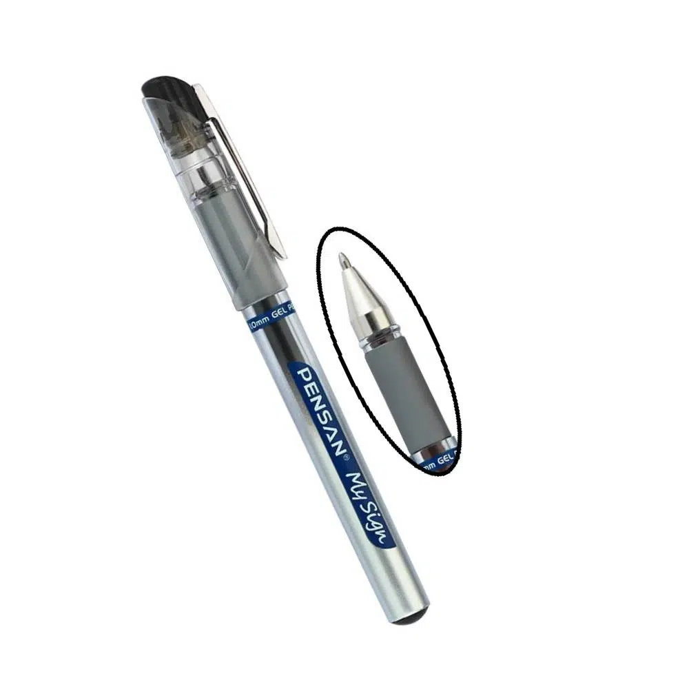 - Pensan My Sign Jel İsviçre yapımı yaylı ve paslanmaz elmas uç ile hem kaliteli hem de uzun süre dayanıklıdır. Akışkan mürekkebi ile mükemmel ve yumuşak bir yazım sağlar. Konforlu ve ergonomik bir tutus için yuvarlak bir tasarıma sahiptir. Konfor, sadelik ve yüksek performans arayan tüketicilerimizi Pensan My Sign Jel’in modern tarzı ile buluşturuyoruz.