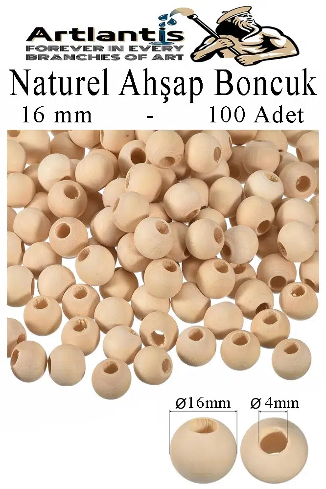 Ürün Adı: Naturel Ahşap Boncuk 16mm 100 lü 1 Paket Ham Boyanabilir Ahşap Yuvarlak Doğal Boncuklar Takı Tasarım Ektinlik Kreş Okul