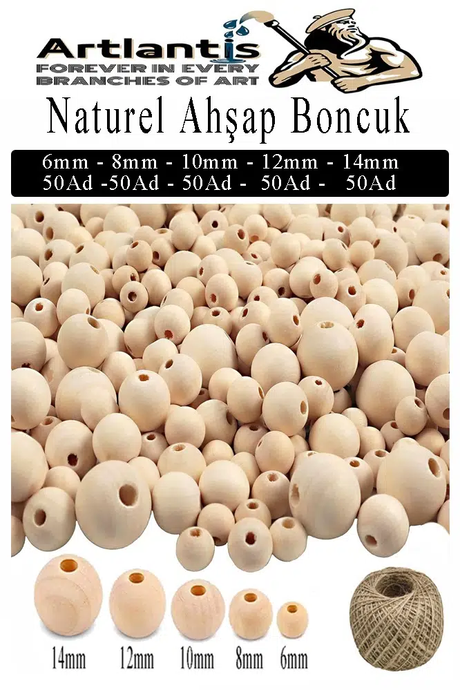 Ürün Adı: Naturel Ahşap Boncuk 250 li 1 Paket Jüt İpi Ham Boyanabilir Ahşap Yuvarlak Doğal Boncuklar Takı Tasarım Ektinlik Kreş