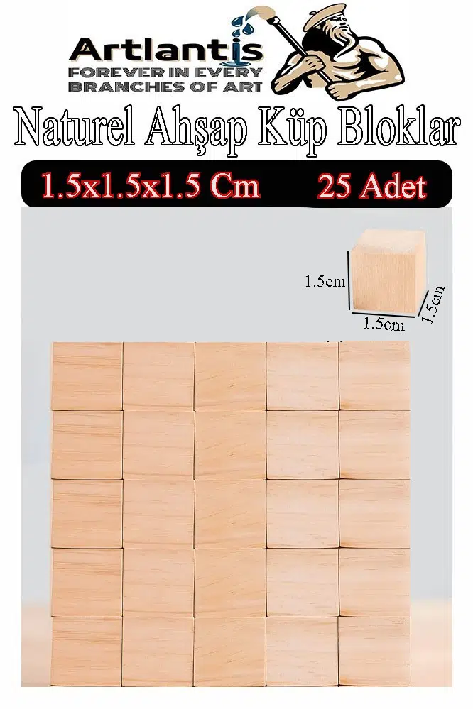 Ürün Adı: Naturel Ahşap Küp Bloklar 1.5x1.5x1.5cm 25 Adet Ahşap Naturel Kare Blok Eğitici Geliştirici Oyuncak Küp Matematik Birim