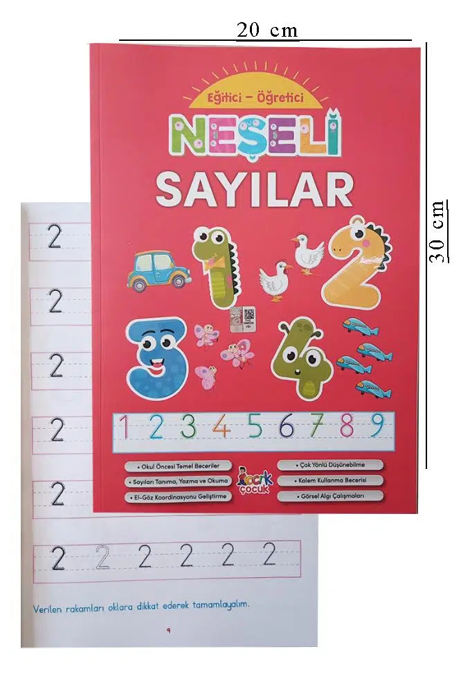 - Neşeli Sayılar ile çocuklarınız hem eğlenecek hem de öğrenecek.Okul öncesi temel becerilerÇok yönlü düşünebilmeSayıları yazma, tanıma ve okumaKalem kullanma becerisiEl- göz koordinasyonunu geliştirmeGörsel algı çalışmalarılt