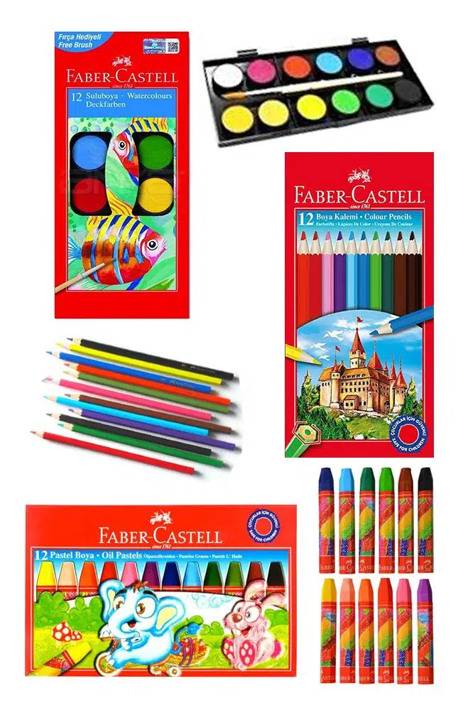 Ürün Adı: Öğrenci Boyama Seti 3 lü Faber 12 Renk Sulu Boya Kuru Boya Pastel Boya 12 li Boya Set Faber Castell Okul Sınıf