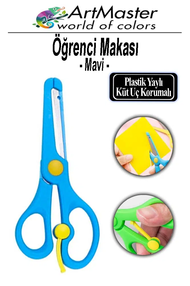 Ürün Adı: Artmaster Öğrenci Makası Mavi 1 Adet Plastik Küt Uç Yaylı Korumalı Çocuk Makası Ana Sınıfı Okul Makası Okul Öncesi Kreş