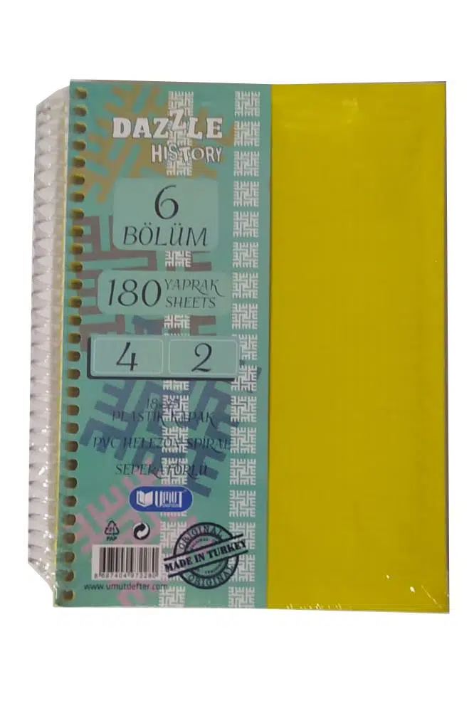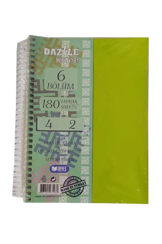 Ürün Adı: Orta Boy 4+2 Ayraçlı Defter 6 Konulu 180 Yaprak 1 Adet 4 Kareli 2 Çizgili Spralli Plastik Kapak Seperatörlü 18x25 cm