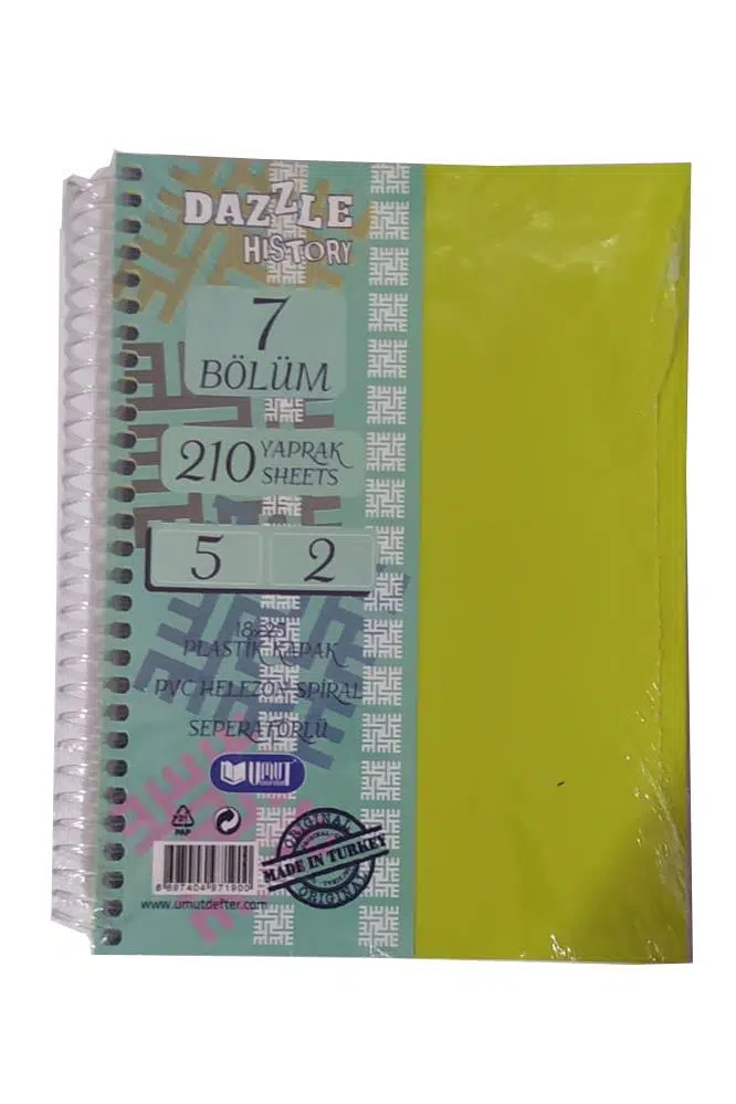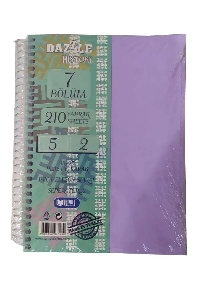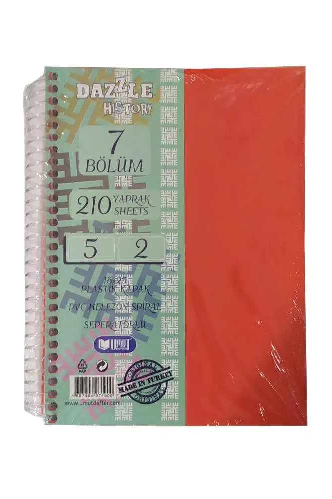 Ürün Adı: Orta Boy 5+2 Ayraçlı Defter 7 Konulu 210 Yaprak 1 Adet 5 Kareli 2 Çizgili Spralli Plastik Kapak Seperatörlü 18x25 cm