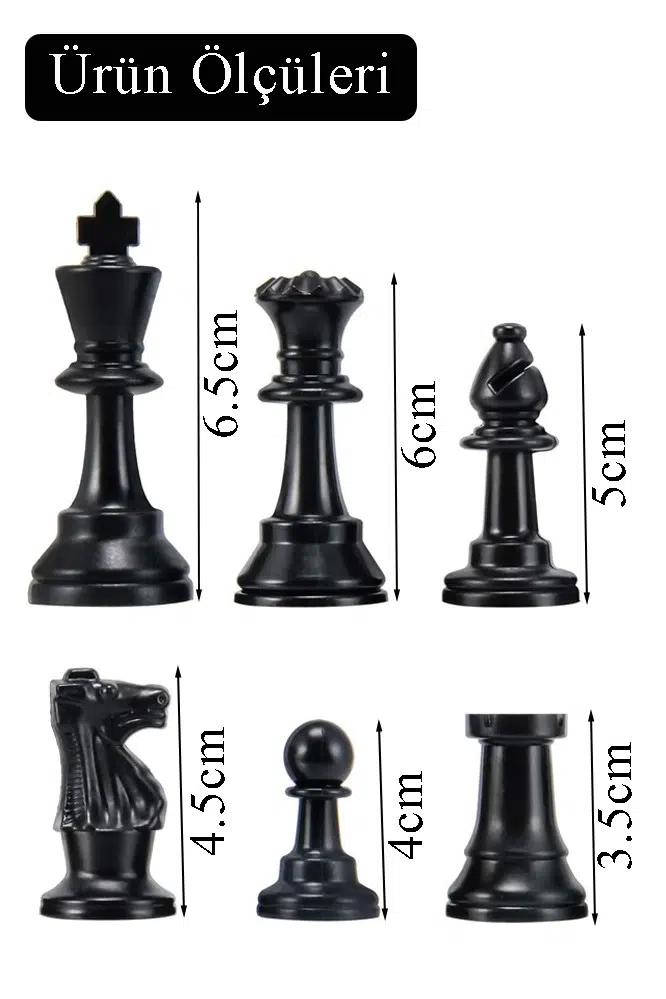 Ürün Adı: Orta Boy Yedek Satranç Taşı 6.5 cm 1 Adet Plastik 65 mm 16 Parça Plastik Satranç Taşları Şah Vezir Fil At Kale Piyon