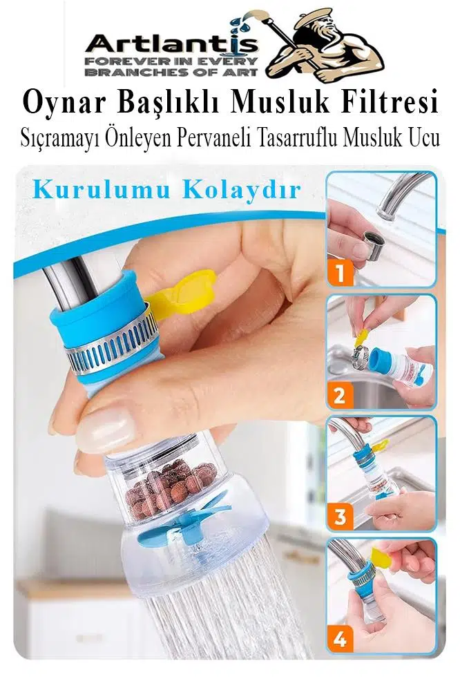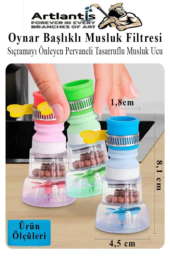 Ürün Adı: Oynar Başlıklı Musluk Filtresi 3 Adet Musluk Başlıgı Sıçramayı Önleyen Pervaneli Tasaruflu Batarya Ucu Mutfak Banyo
