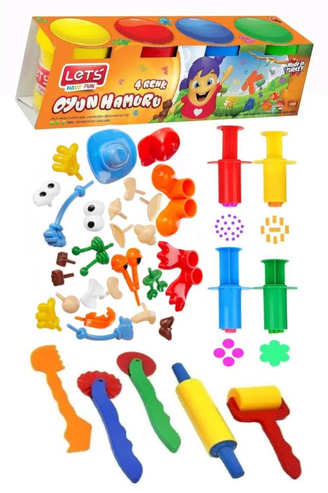 Ürün Adı: Oyun Hamuru 4 Renk Lets Oyuncak Merdane Silindir Kesici Şekiller Kalıp Enjektör Seti 1 Paket Okul Öncesi Kreş Anasınıfı Etkinlik