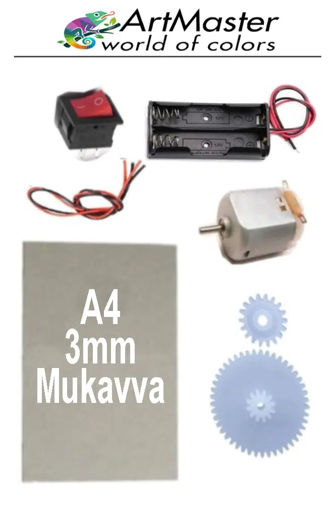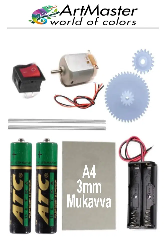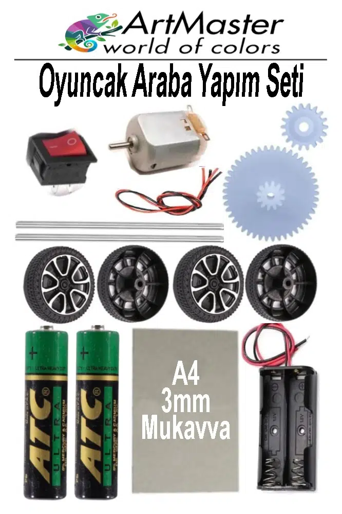 Ürün Adı: Artmaster Oyuncak Araba Yapım Seti 1 Paket Okul Deney Dc Motor Çark Dişli Plastik Tekerlek 2 Adet Metal Şaft Proje Deney Seti