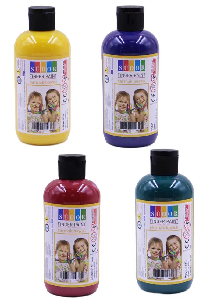 Ürün Adı: Parmak Boyası 250 Gr 4 Adet Çocuklar İçin Yıkanabilir Parrmak Boya Südor Okul Hobi Kreş Etkinlik Kırmızı Sarı Mavi Yeşil