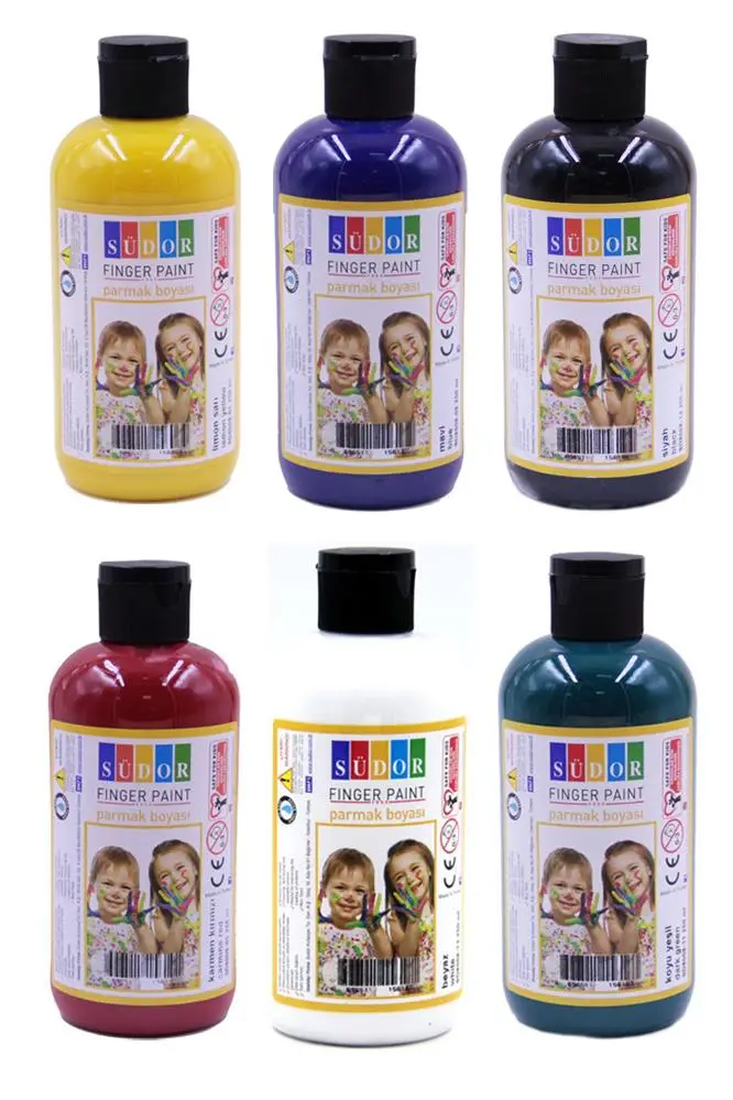 Ürün Adı: Parmak Boyası 250 Gr 6 Adet Çocuklar İçin Yıkanabilir Parrmak Boya Südor Okul Hobi Kreş Etkinlik Kırmızı Sarı Mavi Yeşil Beyaz Siyah