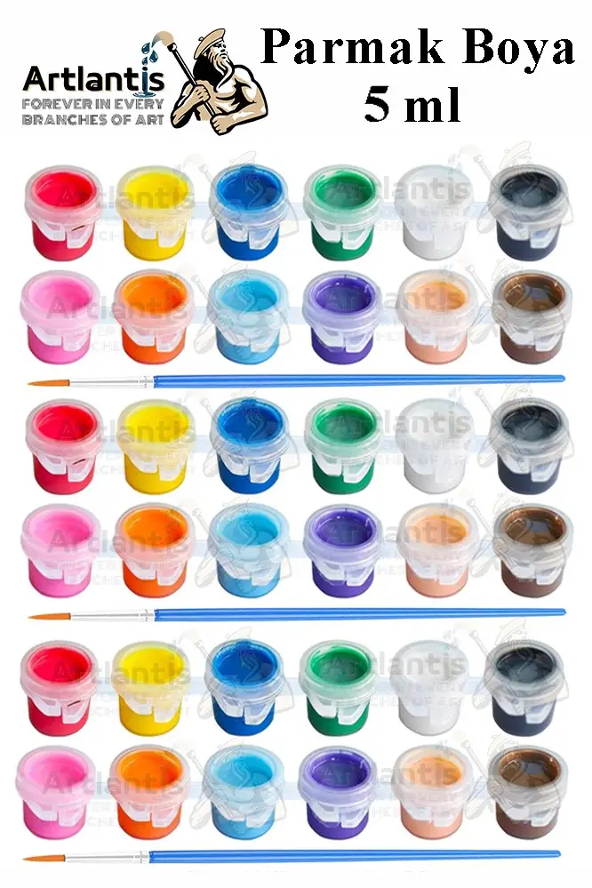 Ürün Adı: Parmak Boyası 5 ml 12 Renk ve Resim Fırçası 3 Paket Mini Küçük Parmak Boya Etkinlik Boyama Boyası Su Bazlı Resim Kreş