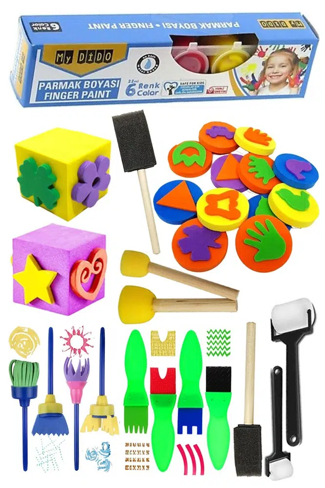 | Etiketler | Parmak Boyası 6 Renk Mydido Sünger Eva Baskı Damga Spatula Rulo Kesik Sünger Eva Okul Öncesi Etkinlik Seti |