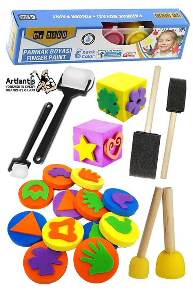 Ürün Adı: Parmak Boyası Ponpon Sünger Tampon Fırça Küp Eva Baskı Seti Sünger Rulo 26 Parça 1 Paket Südor Parmak Bpyası Baskı Seti