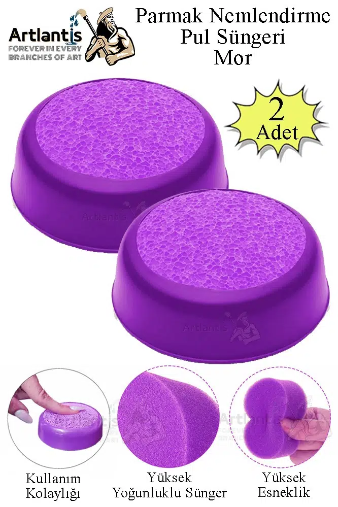 Ürün Adı: Parmak Nemlendirme Süngeri Mor 2 Adet Renkli Masaüstü Pul Süngeri Para Sayma Süngeri Poşet Kağıt Ayırma Süngeri Büro