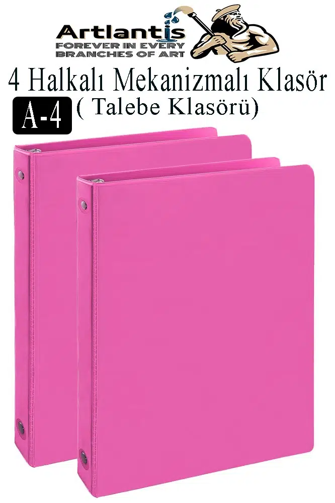 Ürün Adı: Pembe 4 Halkalı Klasör 2 Adet A4 PVC Öğrenci ve Ofis Tipi Evrak Sunum Klasörü İç Cepli Otomatik Mekanizmalı Büro