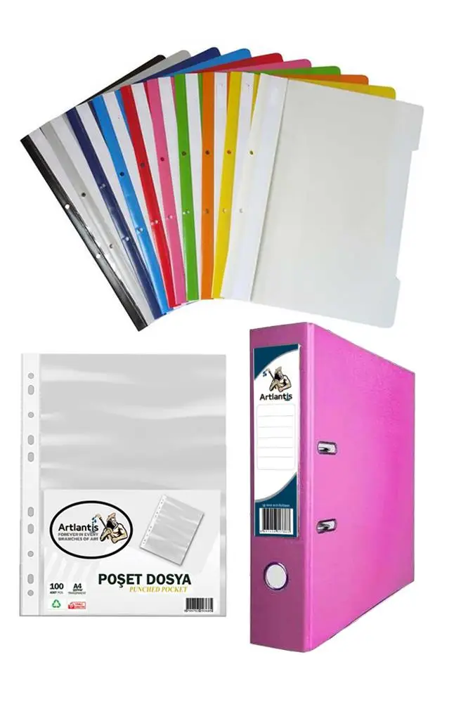 Ürün Adı: Pembe Büro Klasörü Telli Dosya ve Poşet Dosya Seti 1 Adet Büro Klasörü 10 Renk Telli Dosya 100 Adet Poşet Dosya