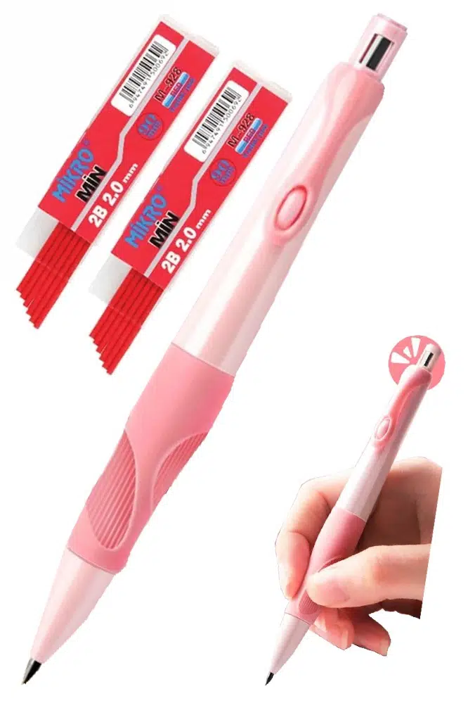 Ürün Adı: Pembe Kalın Uçlu Kalem 2.0 mm 1 Adet ve 2.0 Mm Kalın Uç Kırmızı 2 Adet VR22 Kalın Uçlu Mekanik Kalem
