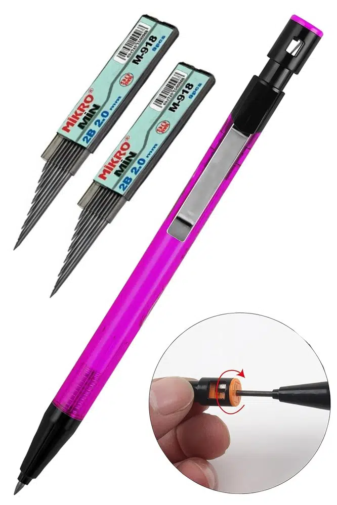 2,0 mm kalınlığında dolum bu mekanik kalemi dayanıklı hale getirir, diğer kırılgan mekanik kalemlerin aksine, mekanik kalemlerimiz yazma veya çizim sırasında dolumun kırılmamasını sağlar.