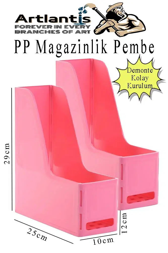 Ürün Adı: Pembe Magazinlik Demonte Plastik 2 Adet Plastik Kutu Klasörü Magazinlik A4 Dosya ve Masa Düzenleyici Sınıf Ev Ofis