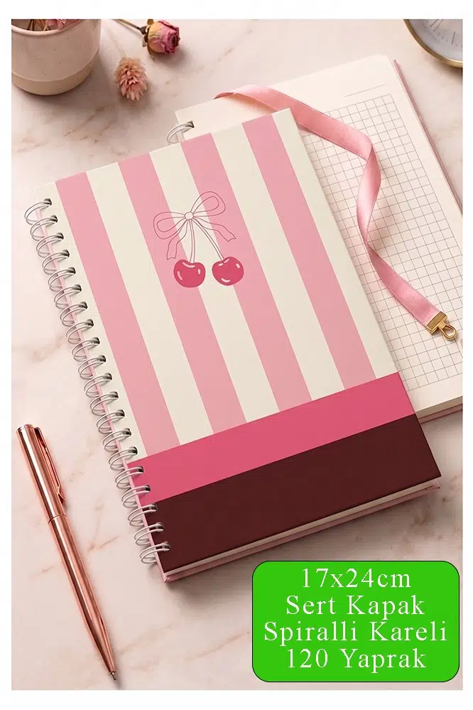 Zarif pembe tonları ve şık tasarımıyla dikkat çeken bu defter, masa üzerinde hoş bir görünüm oluştururken aynı zamanda motivasyonunuzu artırır. Sağlam spiralli yapısı sayesinde sayfalar kolayca çevrilir ve uzun süreli kullanım sağlar.
