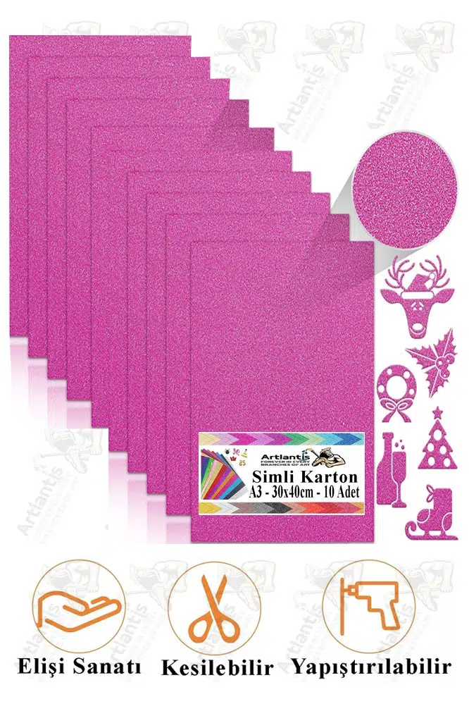 | Etiketler | Pembe Simli Karton A3 30x40 cm 10 lu 1 Paket Simli Fon Kartonu Parıltılı Kağıt Anasınıfı Kreş Etkinlik Proje |