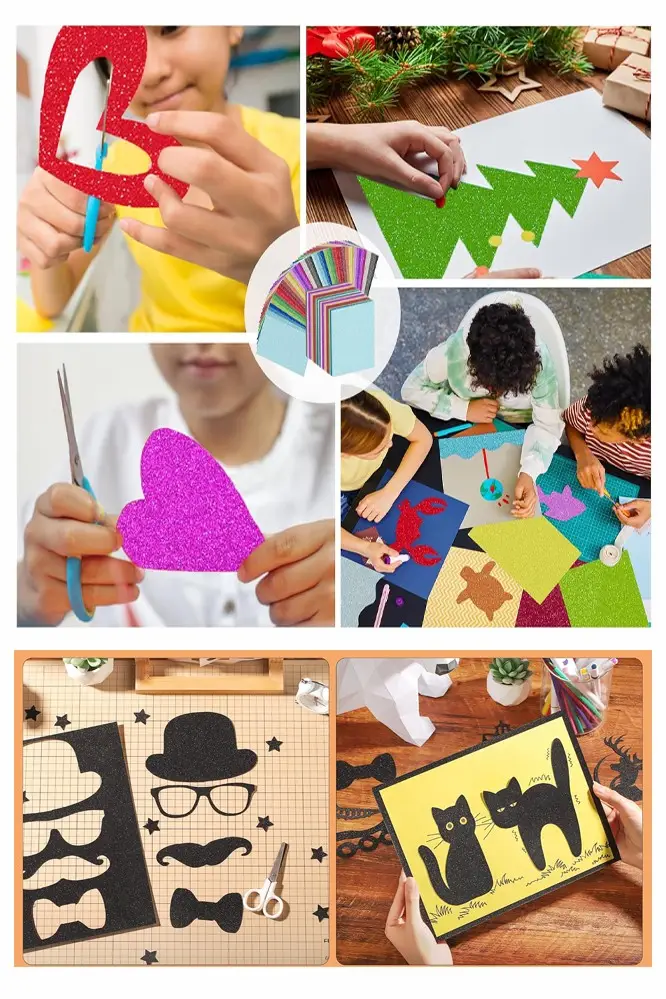Dökülmeyen Simli Karton pürüzsüz zımpara kağıdı gibi hissettirir ve simli kağıt bir görünüm kazandırmak için kalın sim kullanır ve sim kolayca soyulmaz. 250 gsm simli kağıt, katlama, delme ve, kalıp kesiciler ve delgeçlerle kesme için mükemmeldir.Simimiz kağıda özel formülümüzle sıkıca yapıştırılmıştır, bu nedenle kullanırken rahatsız edici sim dökülmesi olmaz. Bir tarafı istediğiniz süsleme için parlak ve simli, pürüzsüz beyaz tarafı ise yazı yazmak veya diğer malzemelere yapıştırmak için idealdir (ARKASINDA TUTKAL YOKTUR).
