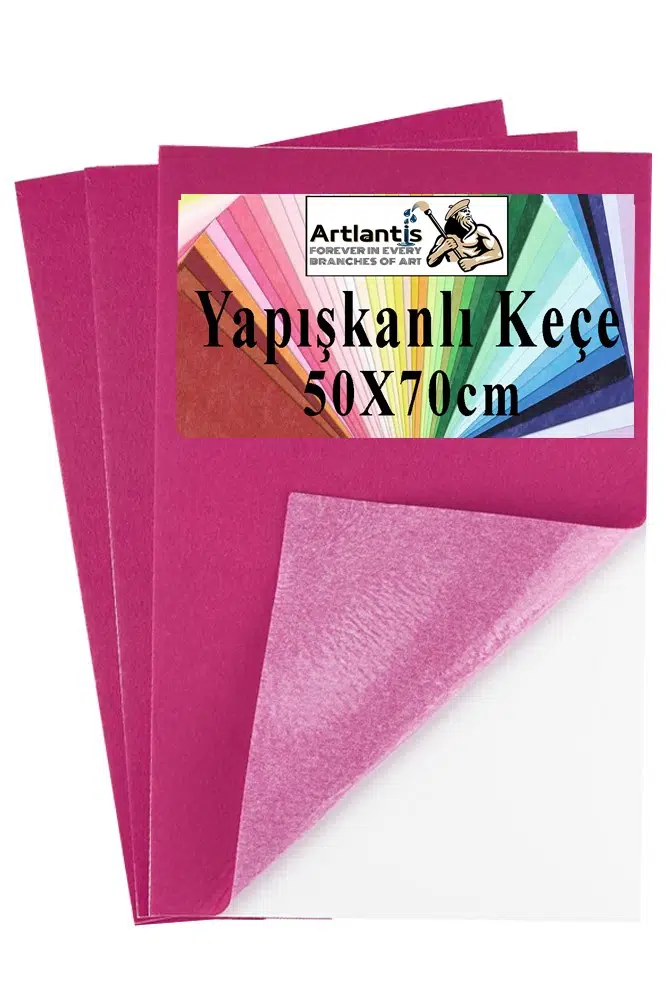 Ürün Adı: Pembe Yapışkanlı Keçe 50x70 cm 3 Adet 2.0 mm Kendinden Yapışkanlı Renkli Hobi Keçesi Elişi Keçe Kumaşı Anasınıfı