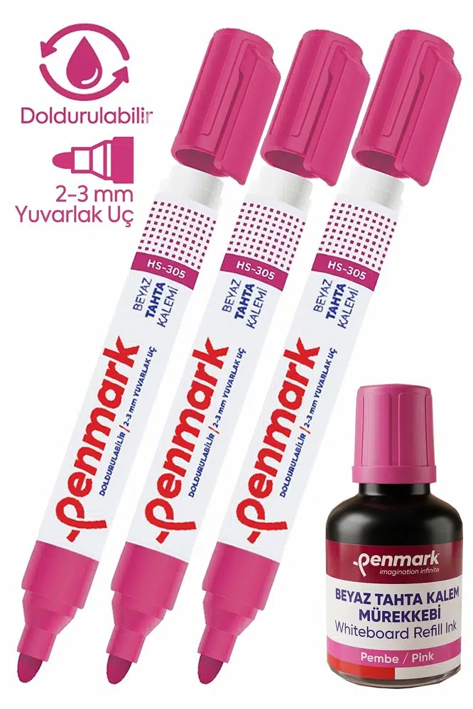 Ürün Adı: Pembe Yazı Tahta Kalemi 3 Adet ve Yazı Tahta Mürekkebi 30 ml 1 Adet Doldurulabilir Tahta Kalemi Beyaz Yazı Tahtası