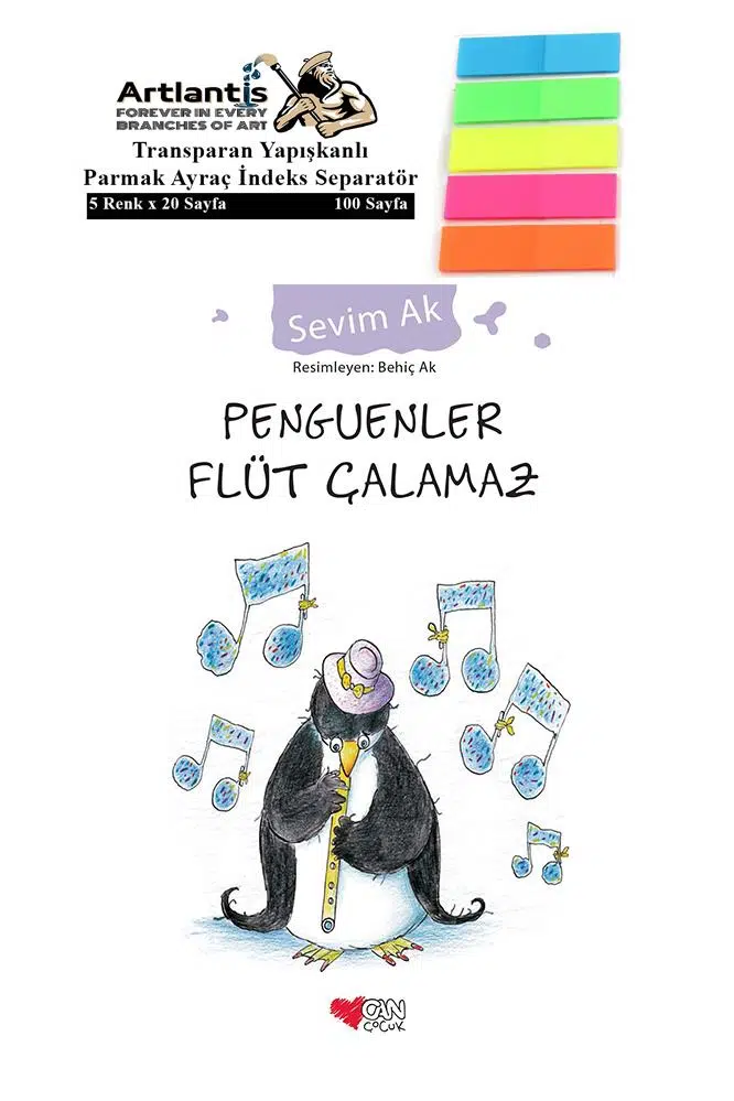Ürün Adı: Penguenler Flüt Çalamaz Sevim Ak 86 Sayfa Karton Kapak 1 Adet Fosforlu Transparan Kitap Ayraç 1 Paket