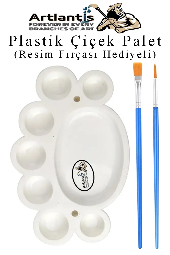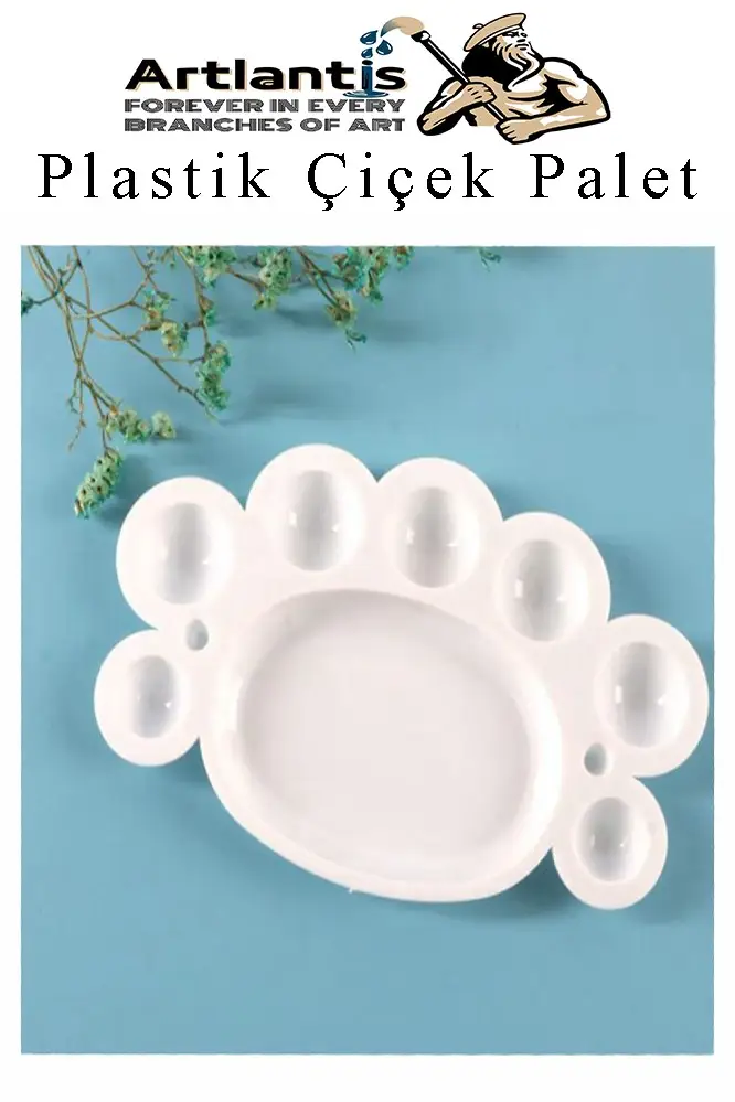 Ürün Adı: Plastik Çiçek Palet 1 Adet Çiçek Boya Paleti 8 Hazneli 17 cm Resim Boyama Paleti Fırça Hediyeli Sanatsal Hobi