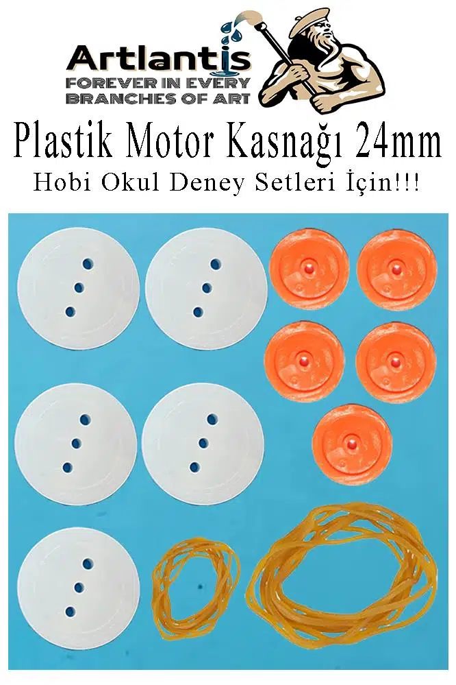 24mm kasnak 5 adet 6.5mm kasnak 5 adet ambalaj lastiği büyük ve küçük 20 adet olarak gönderim yapılmaktadır