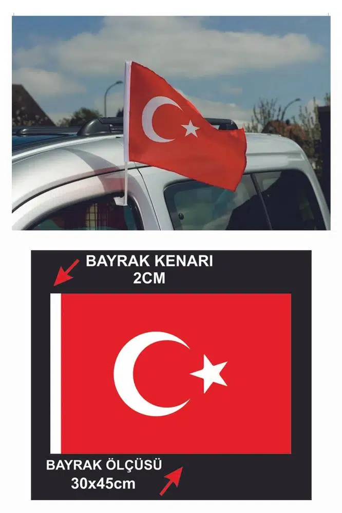 - Ülkemizde, düğün, nişan, sünnet, asker uğurlama, özel bir gün kutlaması gibi organizasyonlarda konvoy yapan araçlar, Türk bayrağı takarak, konvoya dahil olduklarını göstermeye çalışırlar. Araç bayrağı olarak bilinen ve genelliklere özel aparatı ile araçların camına takılan bayraklar, firmamız tarafından üretilmektedir. *Araçların kapı camlarına özel aparat ile kolaylıkla takılıp çıkartılabilmesi için özel kirli beyaz PVC plastik aparatları ile birlikte 30x45cm bayrak üretimleri yapıyoruz. Bu bayrak çeşitleri arasında Türk bayrağı, siyasi parti bayrakları, spor takımları bayrakları gibi farklı türlerde olabiliyor. *Araç bayrağı çeşitleri için kullanılan ölçü 30×45 cm olarak belirlenmiştir. ürünlerimiz her türlü hava şartlarına karşı dayanıklı olması için özel kumaş ürünlerinden üretilmektedir. Müşterilerimiz siparişlerini verirken, konvoy bayrağı olarak verebilmekte ve üretimlerimizi istenilen sayıda hemen yapmaktayız. Ayrıca bağlantı aparatları, kirli beyaz rengindedir. Ürünümüz 110 GR RAŞHEL kumaştır. Ürün bez veya naylon değildir. 110 GR ALPAKA KUMAŞTIR.