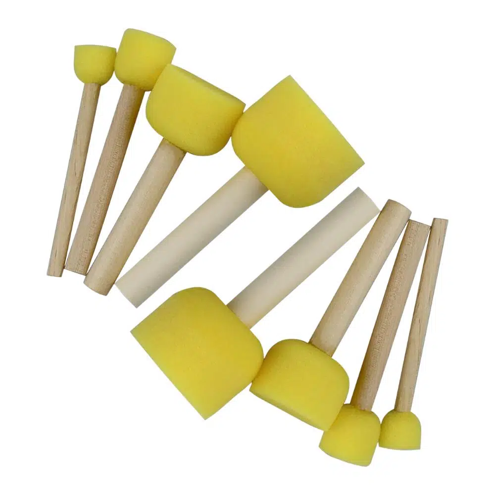 - Ahşap saplı, 4 farklı boyda sünger ponpon tampon fırça seti.