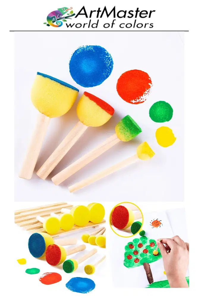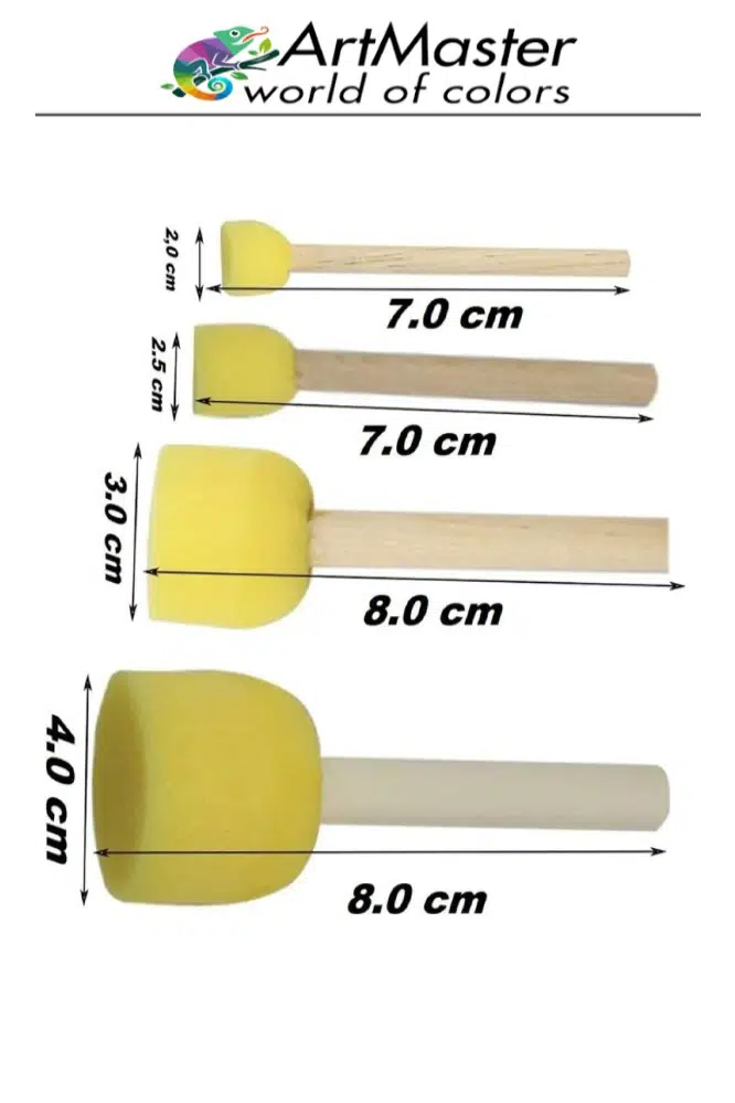 - Ahşap saplı, 4 farklı boyda sünger ponpon tampon fırça seti.