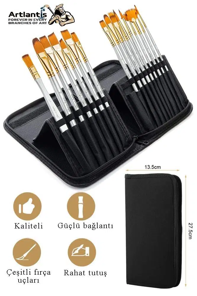 Ürün Adı: Profesyonel Resim Fırça Seti 15 li 1 Paket Sentetik Kaliteli Ressam Fırça Seti Çantalı Akrilik Suluboya Guaj Sanatçı