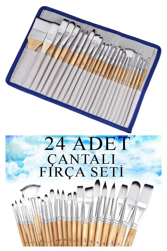 Ürün Adı:Profesyonel Resim Fırça Seti 24 lü 1 Paket Sentetik Kaliteli Ressam Fırça Seti Çantalı Akrilik Suluboya Guaj Sanatçı