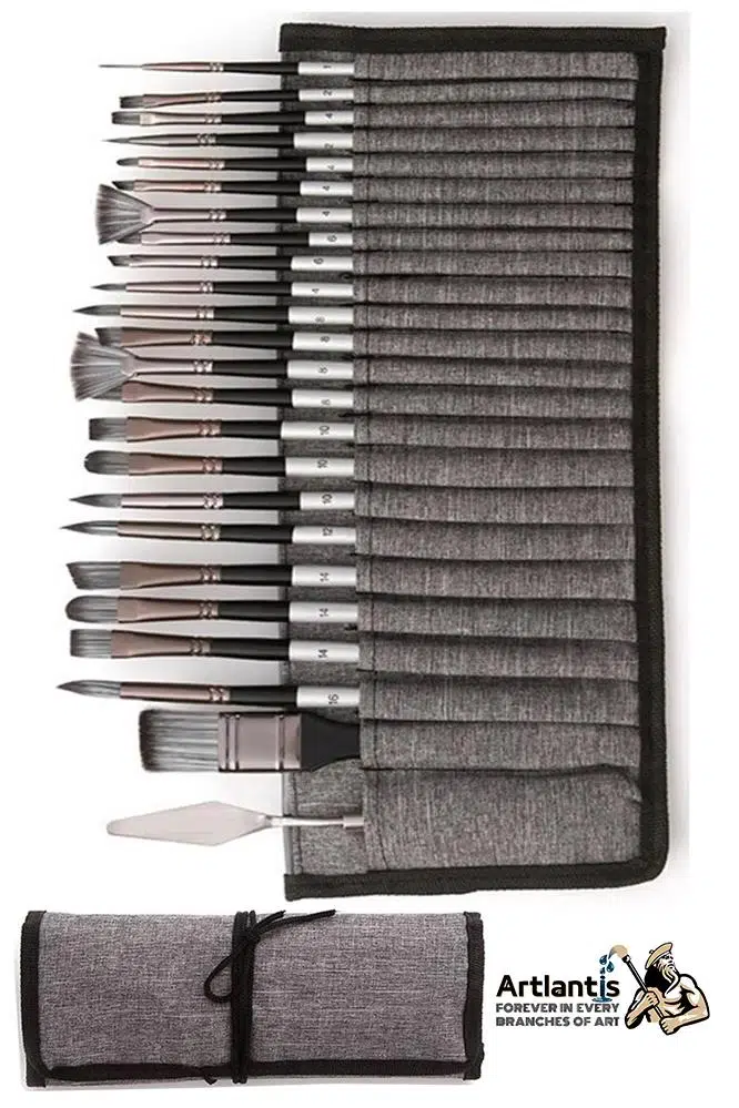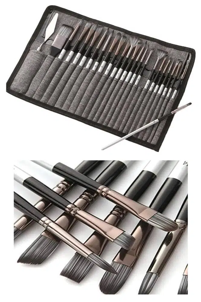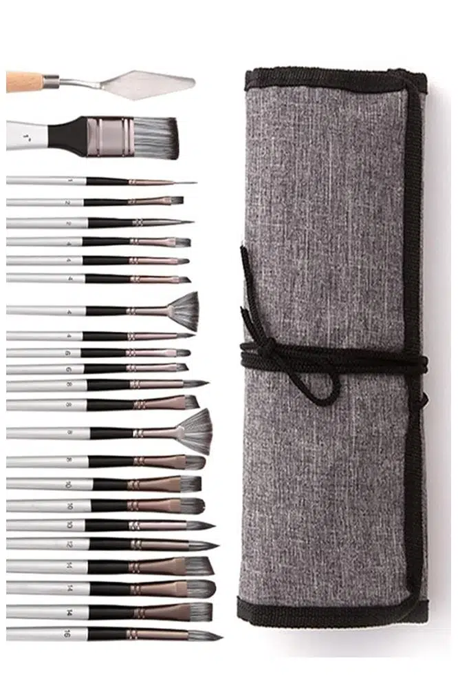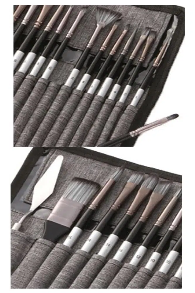 Ürün Adı:Profesyonel Resim Fırça Seti 24lü 1 Paket Sentetik Kaliteli Ressam Fırça Seti Çantalı Akrilik Suluboya Guaj Sanatçı İçin