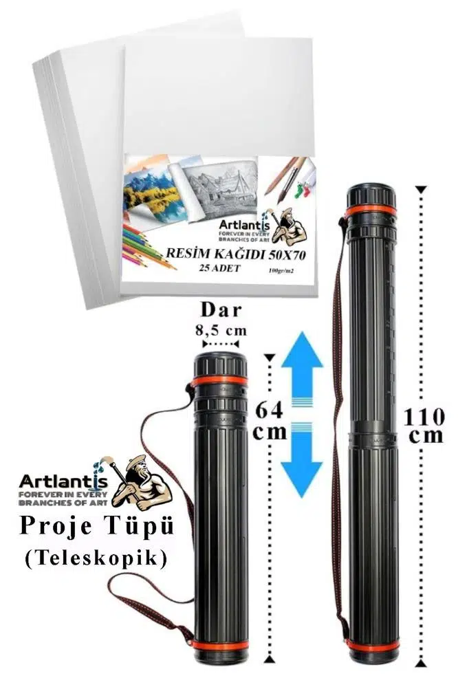 Ürün Adı: Proje Tüpü Dar 1 Adet 50x70 cm Resim Kağıdı 25 Adet Bozuka Proje Tüpü Silindir Proje Tüpü