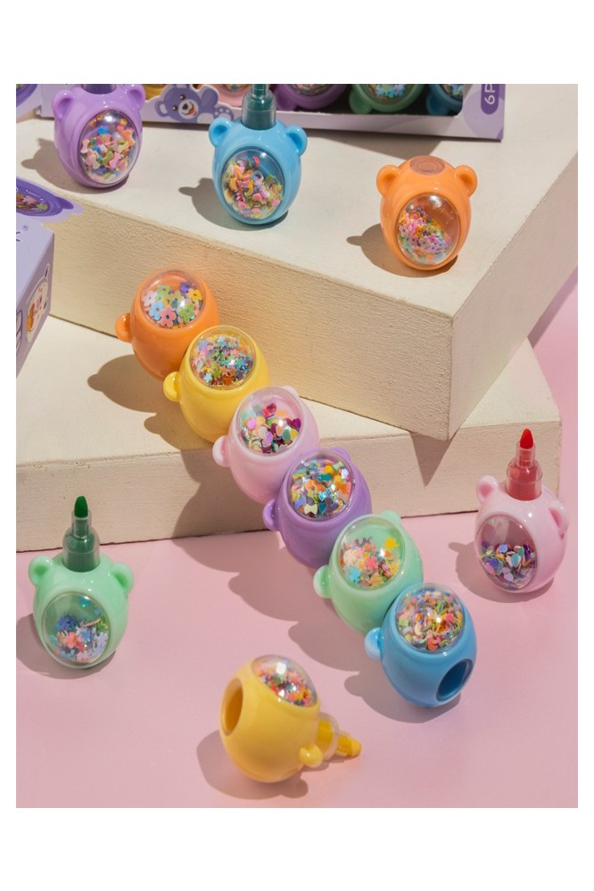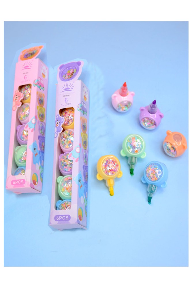 Ürün Adı: Pullu Ayıcık Yumurtlayan Fosforlu Kalem 1 Paket 5 Renk Pullu Ayıcık Figürlü İşaret Kalemi Mini 5 li Fosforlu Kalem