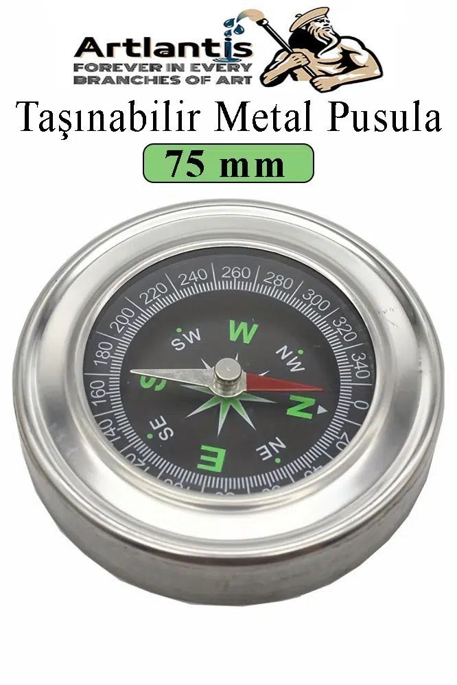 Ürün Adı: Pusula Çelik 75 mm 1 Adet Profesyonel Metal Kasa Dayanıklı Taşınabilir El Pusulası Yuvarlak Cep Pusulası