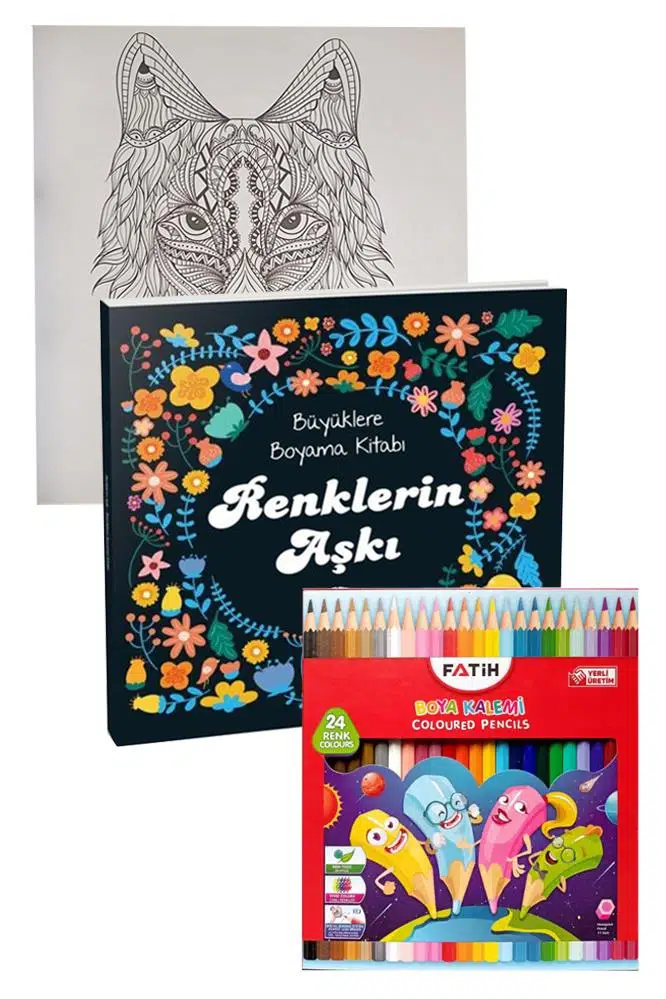 Ürün Adı: Renklerin Aşkı Büyüklere Boyama Kitabı Fatih 24 Renk Kuru Boya 1 Adet Ema Boyama Kitabı Büyükler İçin Mandala Yaratıcı Boyama