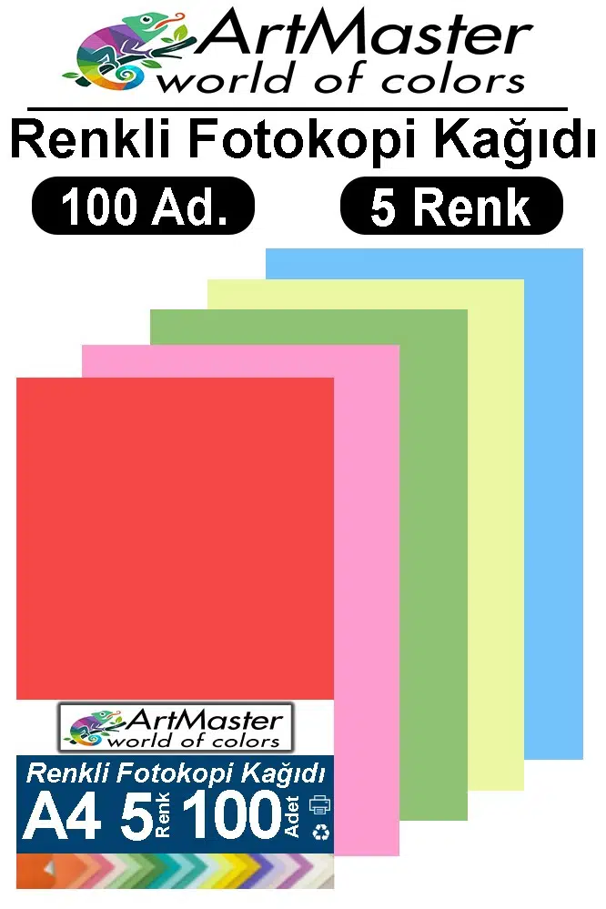 Ürün Adı: Renkli A-4 Fotokopi Kağıdı 100 Lü 1 Paket ArtMaster Fotokopi Renkli A4 Kağıdı 100 Lü Oku Büro Ofis Anasınıfı