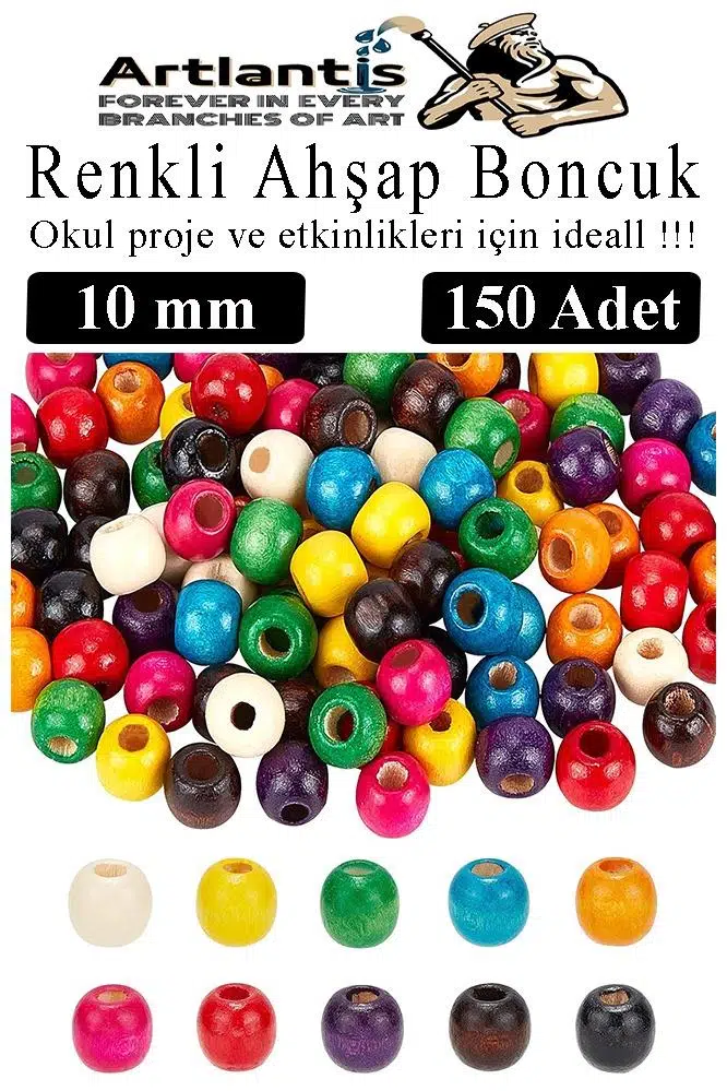 Ürün Adı: Renkli Ahşap Boncuk 10 mm 150 Adet Renkli Tahta Boncuk El İşi Okul Öncesi Kreş Anasınıfı Proje Tasarım Ödev Elişi
