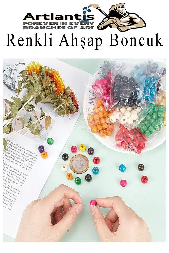 Ürün Adı: Renkli Ahşap Boncuk 10 mm 50 Adet Renkli Tahta Boncuk El İşi Okul Öncesi Kreş Anasınıfı Proje Tasarım Ödev Elişi