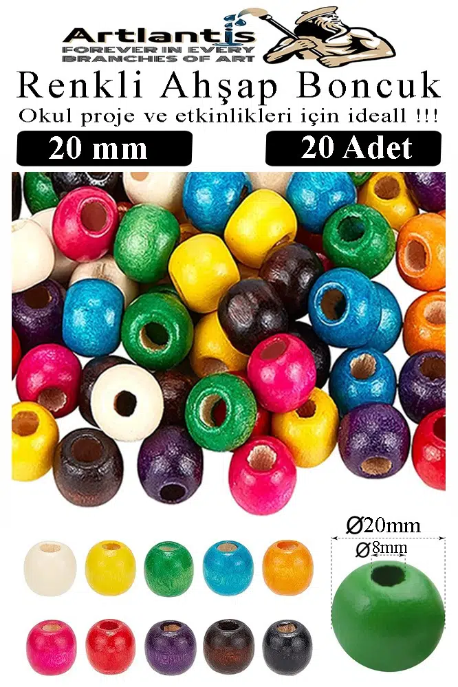 Ürün Adı: Renkli Ahşap Boncuk 20mm 20 li 1 Paket Renkli Ahşap Boyalı Yuvarlak Doğal Boncuklar Saç Takı Tasarım Ektinlik Kreş Okul