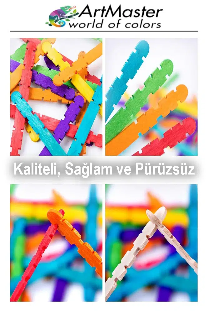 Ürün Adı: Renkli Dil Çubuğu Geçmeli Dar 100 Lü 1 Paket Ahşap Çubuk Çentikli Eklemeli Renkli Tırtıklı Dondurma Çubuğu
